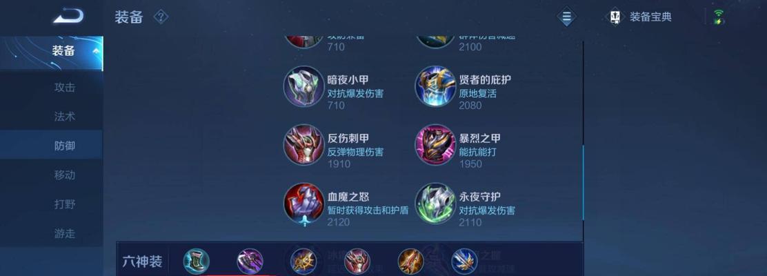 4.防御装备的选择:选择防御装备可以增加自身生存能力,降低敌方英雄的对你造成的伤害。